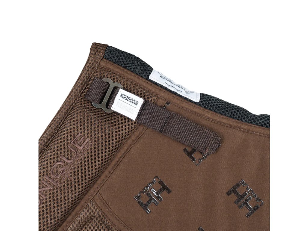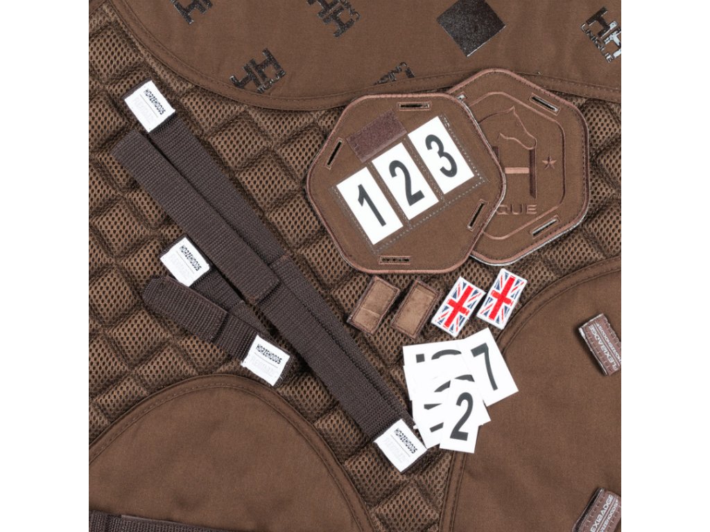 V zadní části dole se na obou stranách podsedlovky nachází panely z odolné tkaniny 300D, do kterých lze na suchý zip upnout oboustranný štítek se závodními čísly, logem Horzehoods Ltd., nebo třeba logem sponzora.