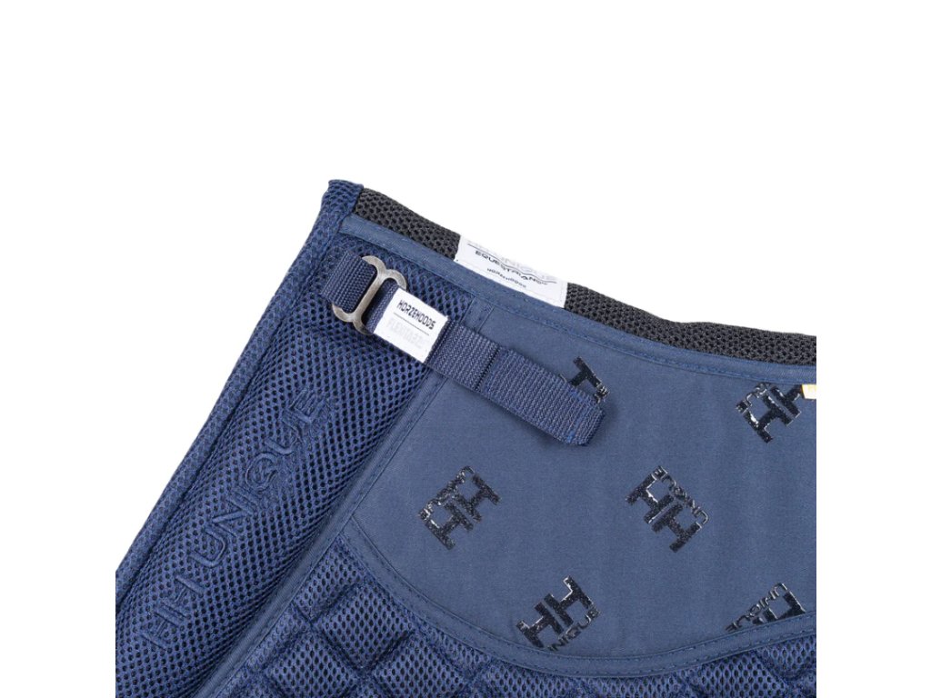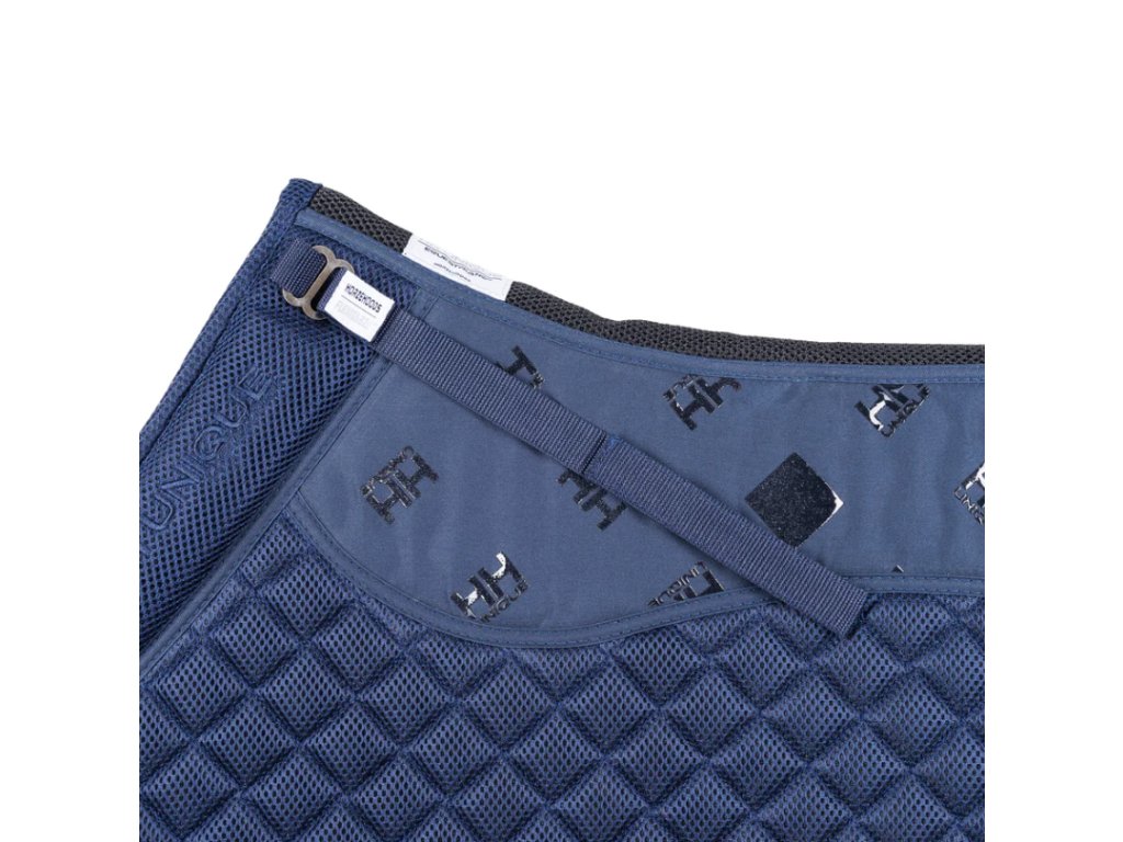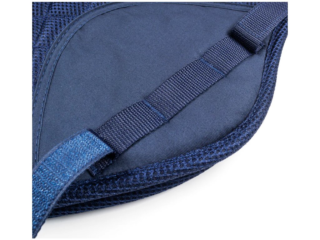 Část podsedlovky kolem podbřišníku má svršek z odolné 300D tkaniny. Páska na podbřišník je na suchý zip a lze zcela otevřít. Pod páskou se skrývají 3 poutka na sedlové řemeny, kterými lze řemeny protáhnout a podsedlovku ještě lépe zajistit.